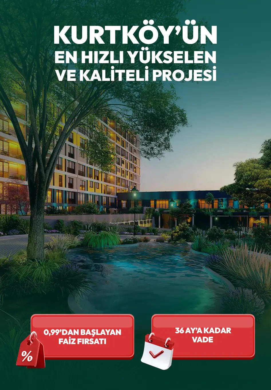 Siz de ailenizle beraber şehrin gürültüsünden uzak ve doğal bir bahçede vakit geçirmek istemez misiniz? Bu Hayat’ta bu mümkün! Şehrin merkezinde doğaya dokunmak, kapınızı açtığınızda kesilmiş çimlerin kokusunu duymak herkese mutluluk verir. Bu Hayat evlerinin tam ortasında bulunan ve tamamen doğal topraktan oluşan peyzaj alanında doğayı hemen yanınızda hissedeceksiniz. Aynı zamanda evinize 1 dakika mesafede olan Kurtköy Şehir Parkında aileniz ve sevdiklerinizle beraber yeşilin tadını çıkaracaksınız.